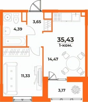 Площадь от 20.3 м2