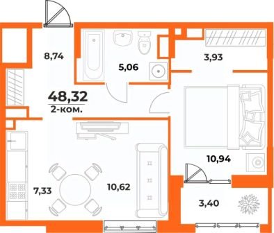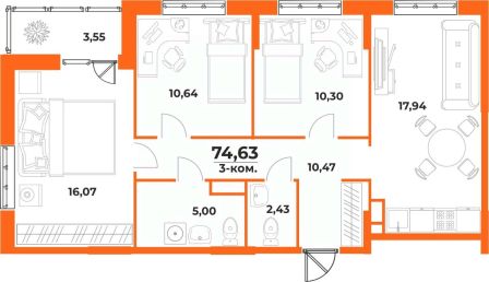 Площадь от 52.2 м2