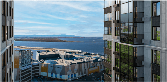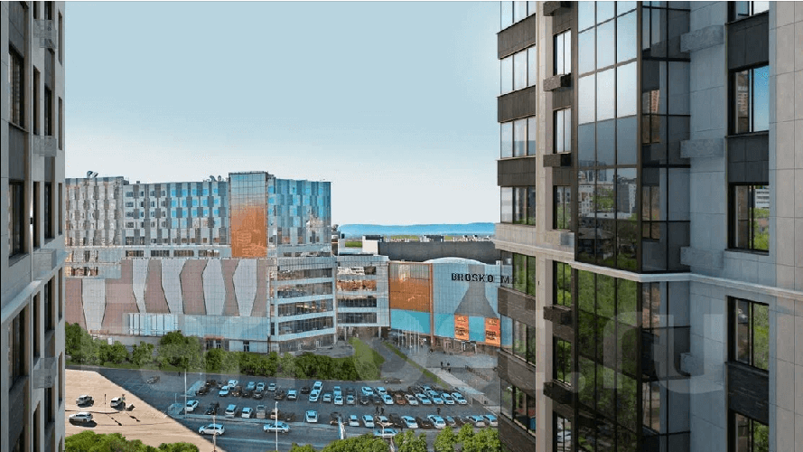 Жилой комплекс «Сезоны» расположен в центре города, на первой линии застройки. Из окон квартир открывается потрясающий вид на город и ТЦ BROSKO MALL, который выглядит футуристично и динамично даже зимой, когда рано темнеет.